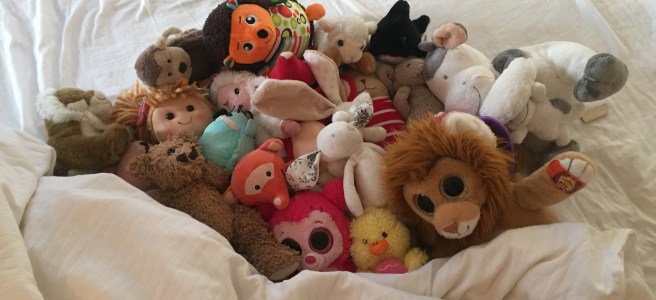 Knirk. Tass tass tass. Flomp! Tass tass tass. Det tusles frem og tilbake mellom barnerommet og «storsenga». Etter tre turer kryper storesøster opp i senga og legger seg til rette mellom seks-sju kosedyr og brer dyna over dem og seg selv