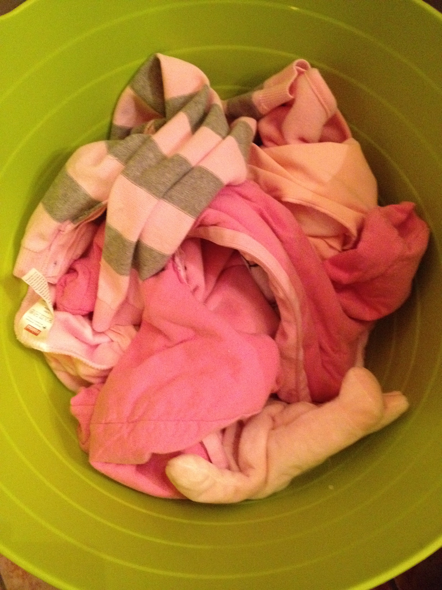 En annen venninne, som har litt eldre barn, beklaget seg over motivene på barneklærne: Kule motiver, som i utgangspunktet ikke forbindes med gutter eller jenter, finnes stort sett bare på gutteklær, mens jenteklærne ofte har typiske jentemotiver — ballettsko, prinsesser, tiaraer, roser, hjerter osv. (Det kuleste klesplagget datteren min fikk til fødselen gikk forresten mot denne trenden: en rosa body med jaktmotiv. Men jeg tror den hører til sjeldenhetene.) IMG_3078.JPG